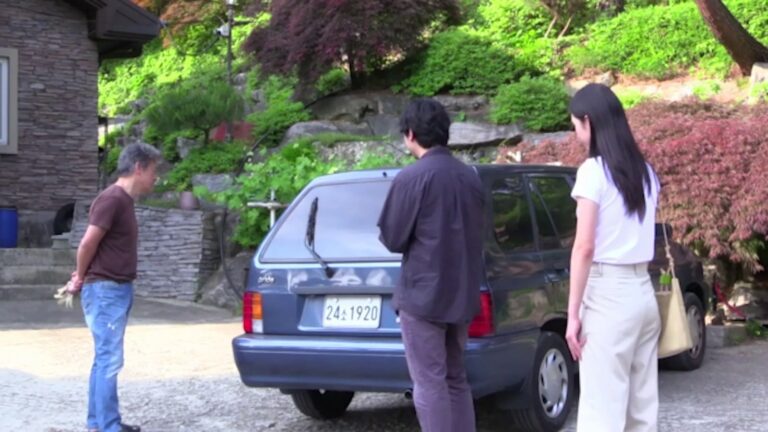 Je n’ai pas vu le hit De Niro / Stiller — question aux in-the-know, est-ce que ça vaut le coup de —, dont Hong Sang-soo s’approprie ici l’argument. A lieu ce qui constitue l’essence même de la chose, je veux dire, le conflit entre le prétendant, forcément décevant, et la famille de l’être aimé, forcément fasciste — je simplifie, du reste nous sommes en Corée, et comme sur le drapeau national les caractéristiques de l’une des parties sont dans l’autre, et vice-versa —, ce conflit éclatera forcément, mais HSS s’efforce avec malice de retarder au maximum. l’explosion.