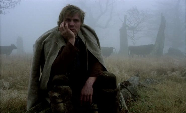 Le cinéaste tente de reproduire l’expérience sur le spectateur, cherchant ainsi à surprendre ce qui se passe derrière le voile des apparences jusqu’au plus profond de la réalité. Ainsi, comme le faisait Carl Dreyer avant lui, il met ses acteurs sous hypnose selon les besoins de la scène, ce qui leur donne cette apparence un peu étrange à l’écran et cet aspect stylisé – gestes décomposés de façon théâtrale, regards dans le vide et parole heurtée. Il faut alors se laisser porter par le rythme du film au risque sinon de s’y ennuyer et de trouver le temps un peu long. La voix off de Hias décrit un monde en train de s’écrouler – la menace de décomposition du monde est constante tout au long du film –, de pourrir laissant place à un ordre nouveau : c’est un texte proprement apocalyptique, dans le sens révélateur du terme. Parole prophétique aussi. En effet, le village est en émoi et croît voir apparaître des signes attestant de la fin du monde, comme ce géant destructeur et anthropophage que les villageois croient avoir aperçu rôdant aux alentours.