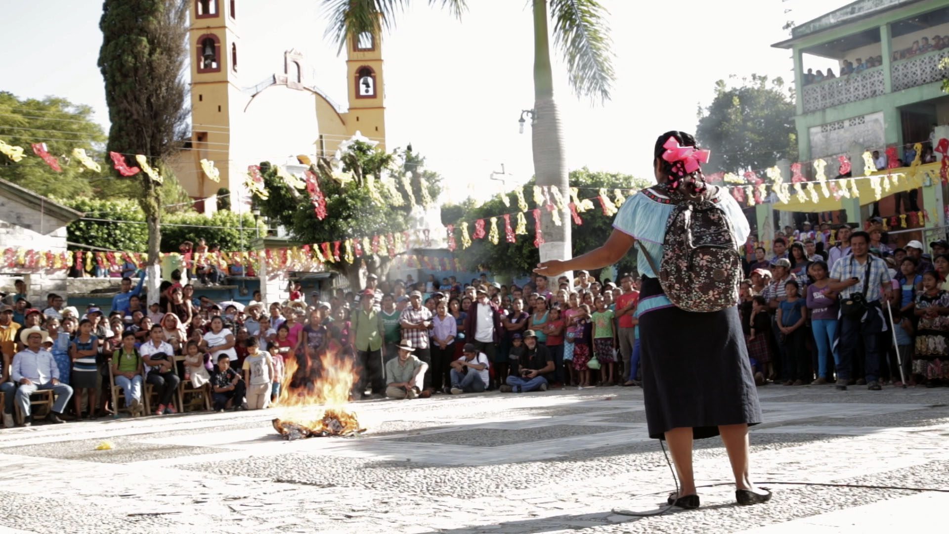 Ce qui affleure d’abord, c’est moins la politique comme thème que comme scène — un théâtre du pouvoir, au sens concret. Non pas celui des institutions établies, mais celui qui se rejoue ailleurs, autrement. Au Chiapas, dans le sillage du mouvement zapatiste, le film observe une organisation collective qui s’invente au quotidien, entre la langue du colon (espagnole) et la langue indigène (ch’ol), dans des espaces déplacés : la rue, les gymnases, des lieux sans apparat, là où la mairie a été symboliquement vidée de sa centralité.